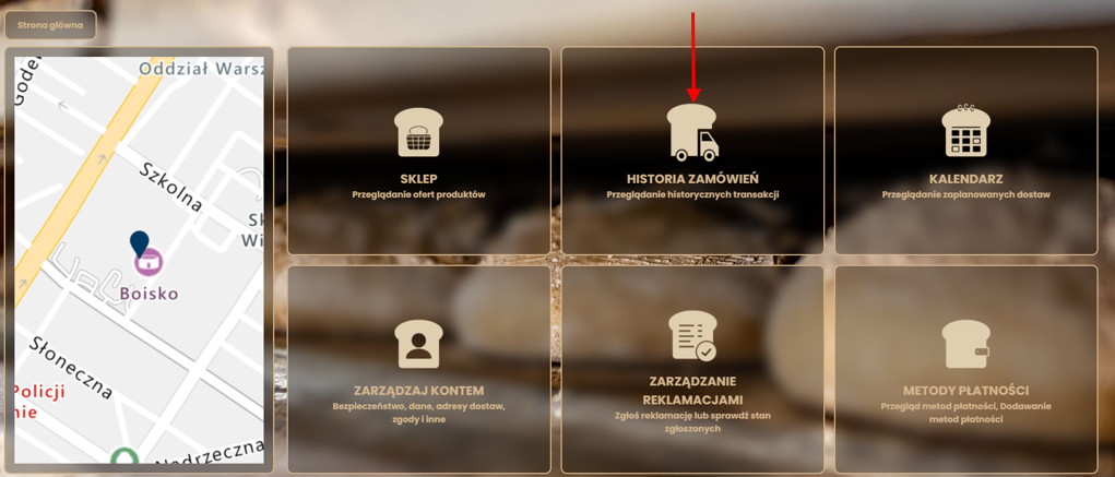 Aby sprawdzić historię swoich zamówień, kliknij na kafelek "Zamówienia".